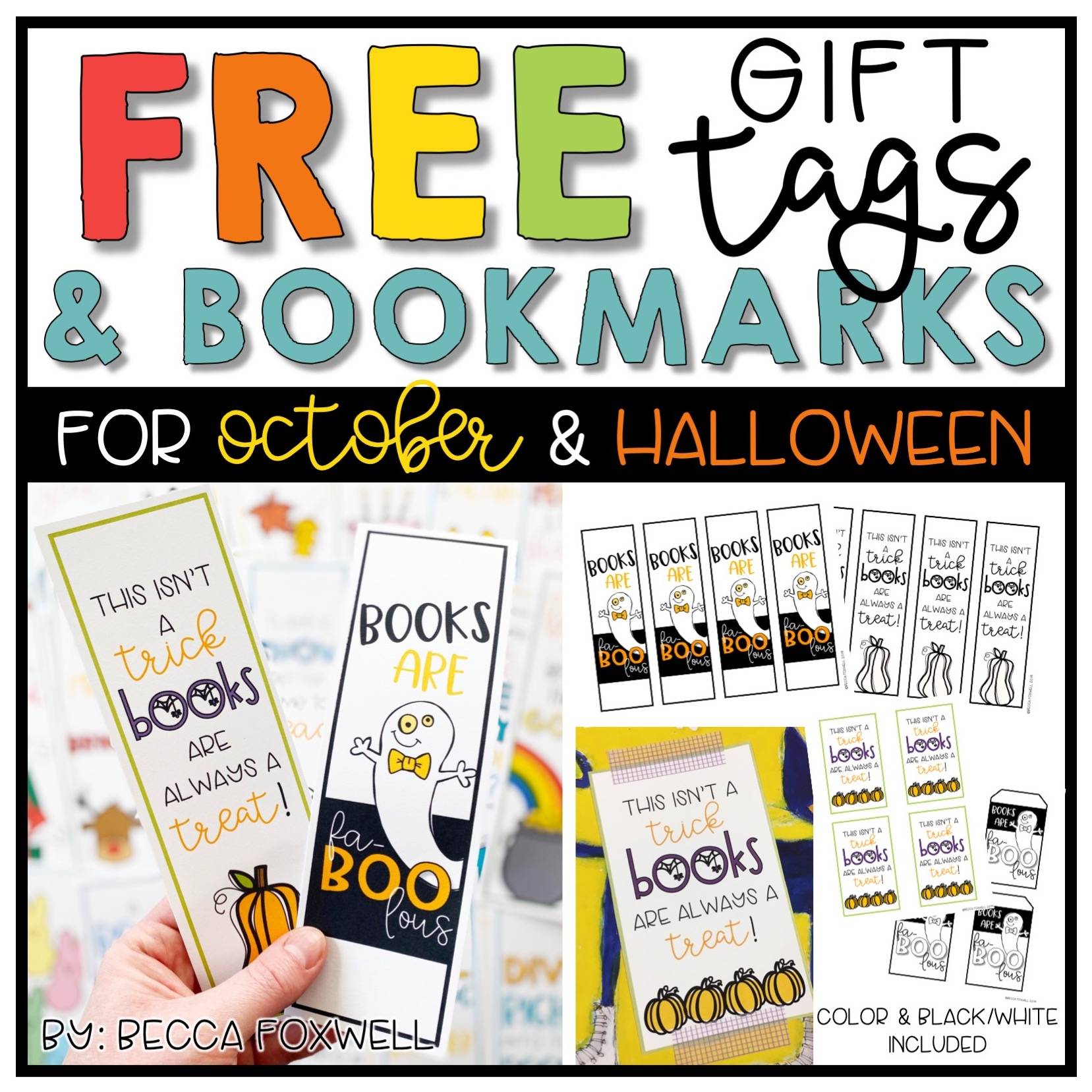 This FREEBIE includes 2 gift tags and 2 bookmarks for you to give to your students for Halloween or just as an October celebration!